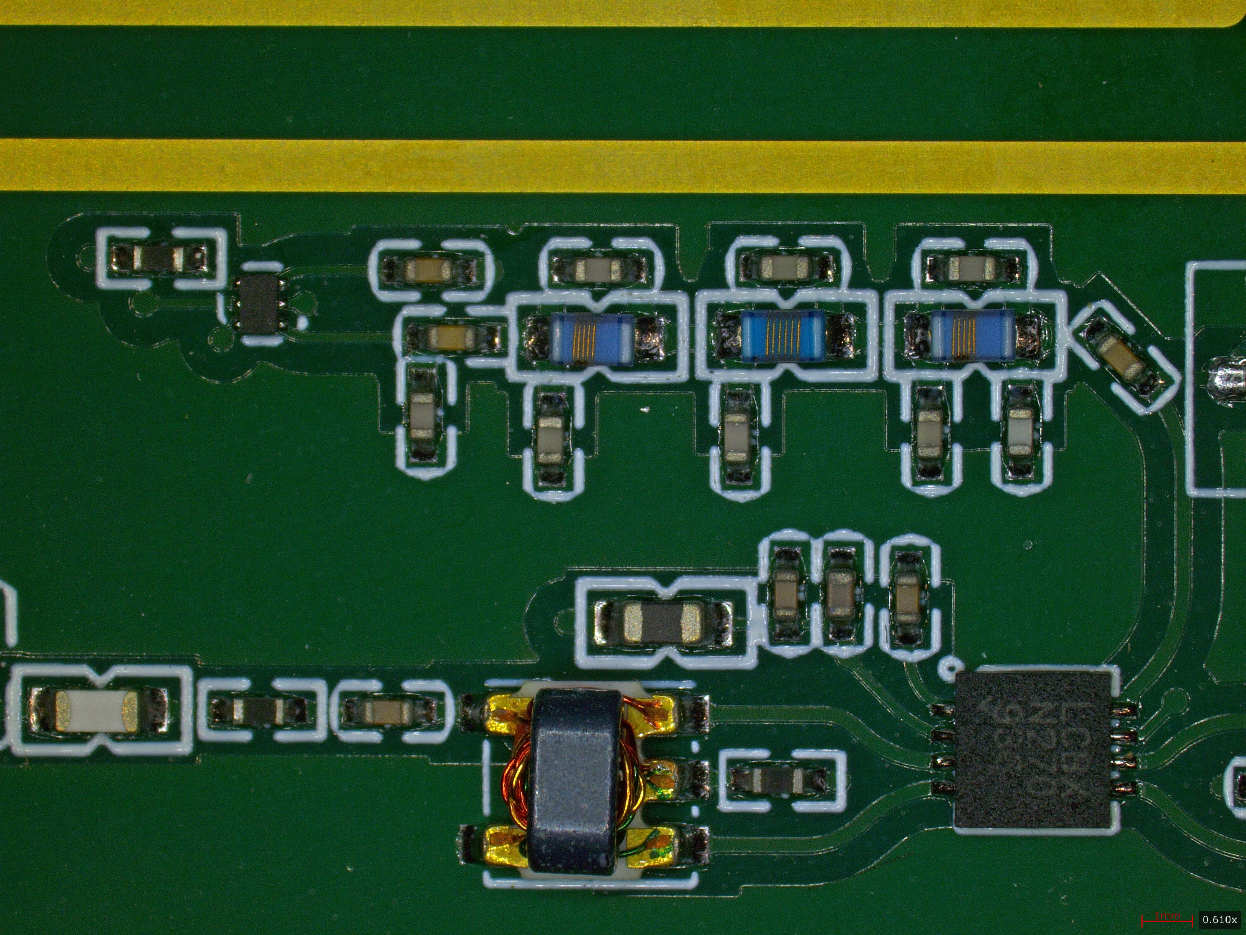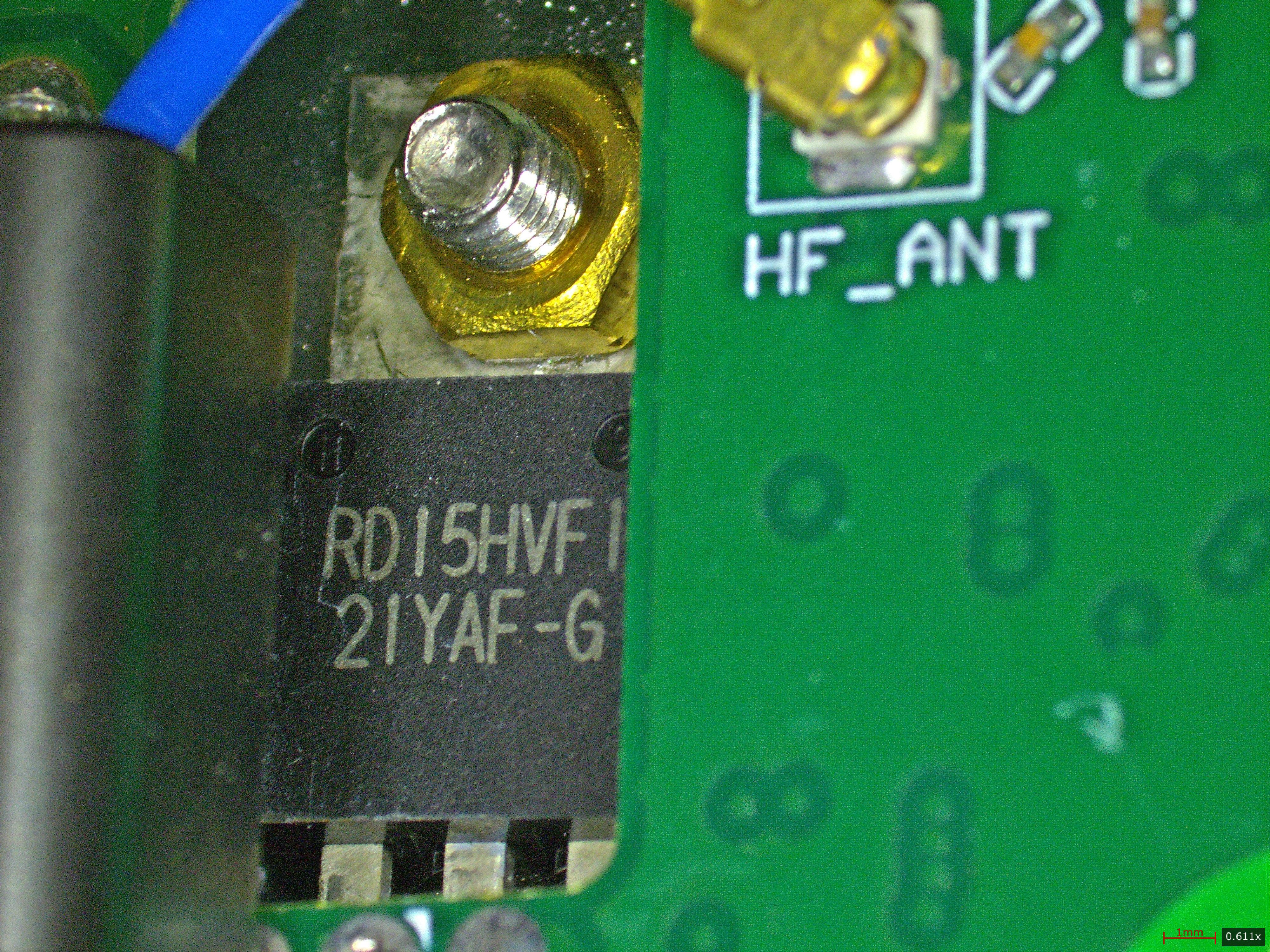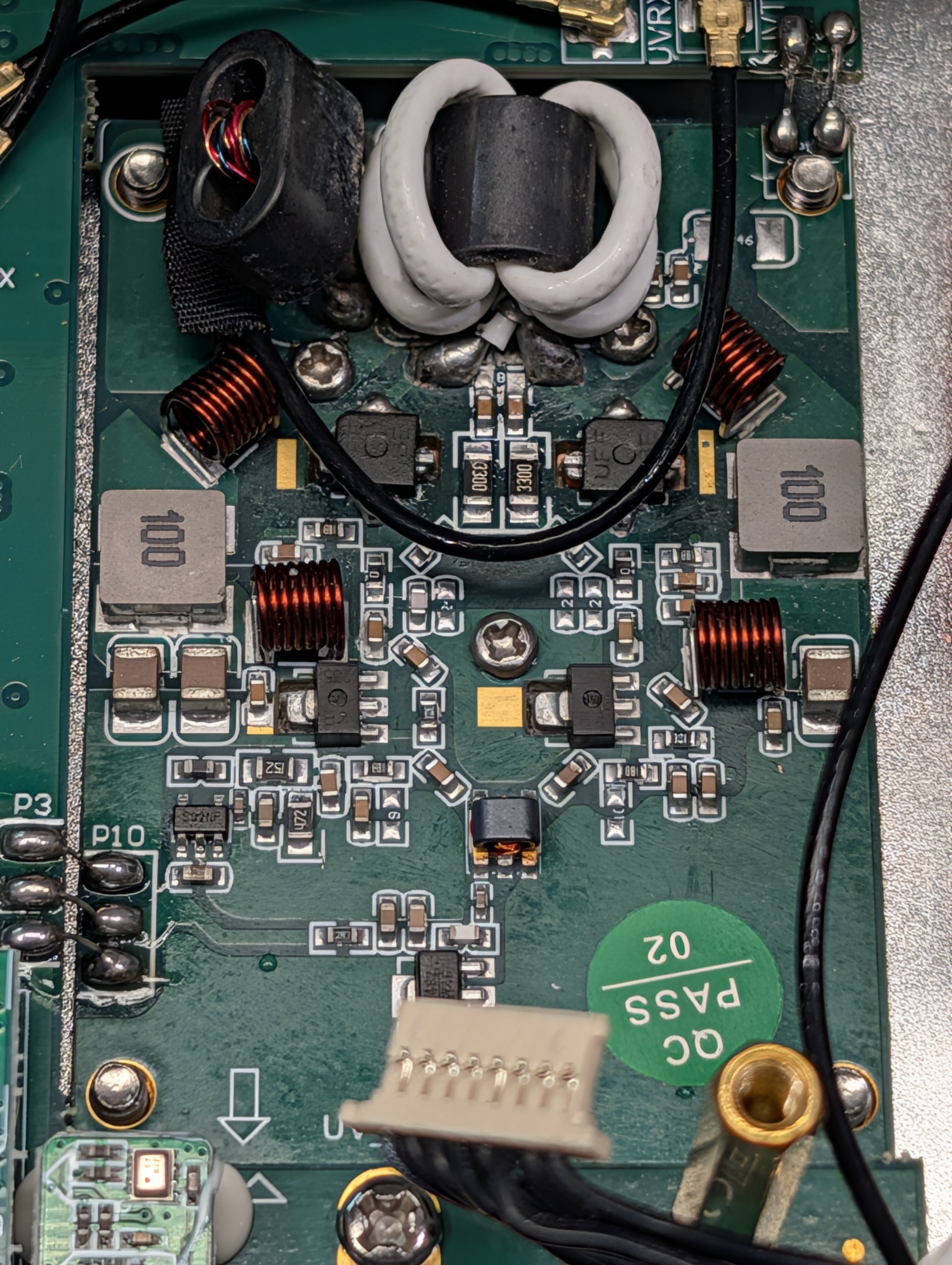 Most of the boards look clean. The upper main board and the HF amplifier board are fine. The VHF/UHF amplifier board is noticeably rougher. Joints are less consistent, and the overall cleanliness is a step below the rest. I also found small FOD on the PCBs, including metal filings.