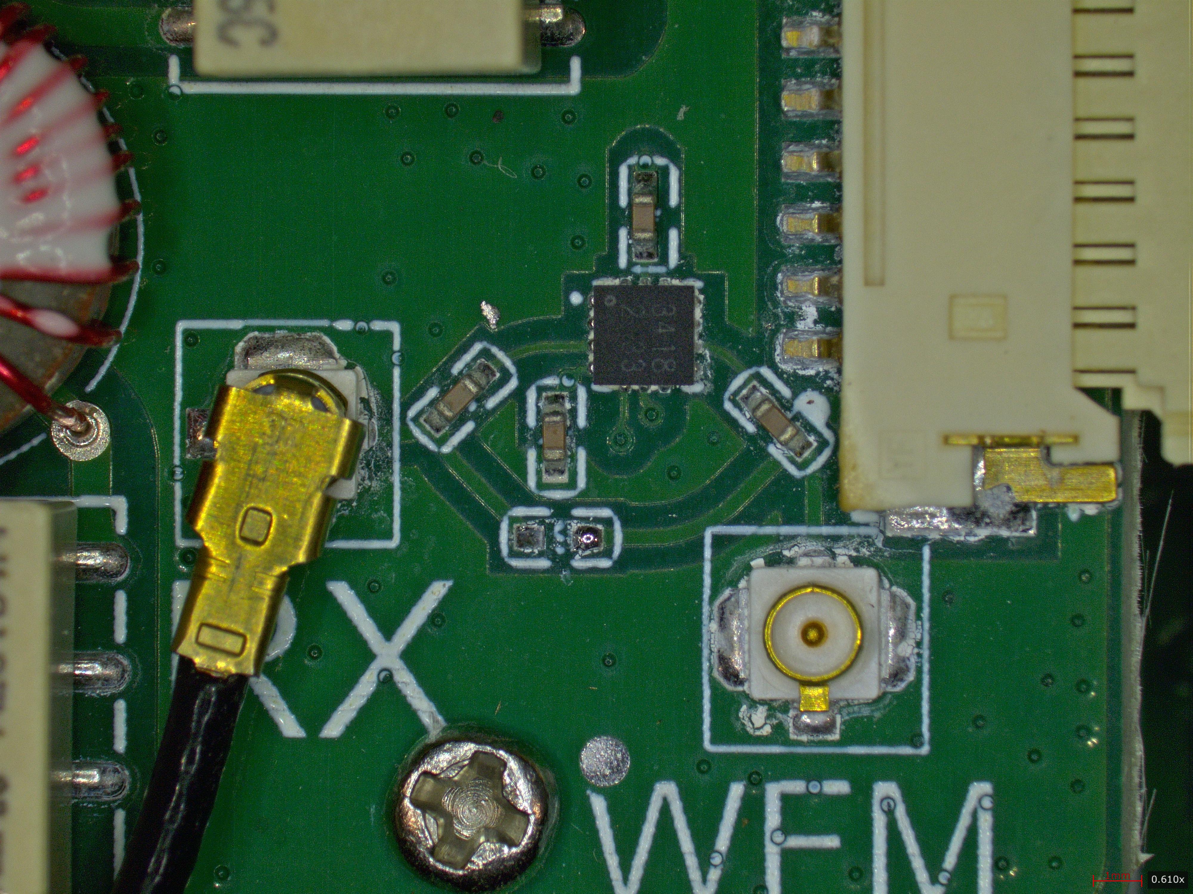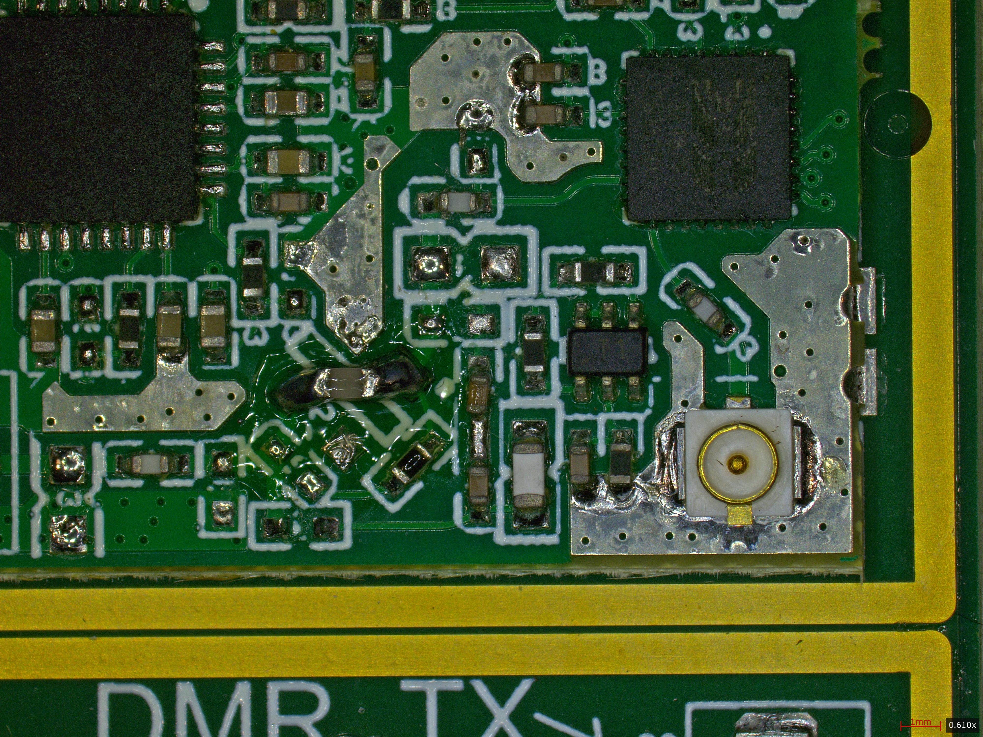 Some messy rework on the DMR module PCB